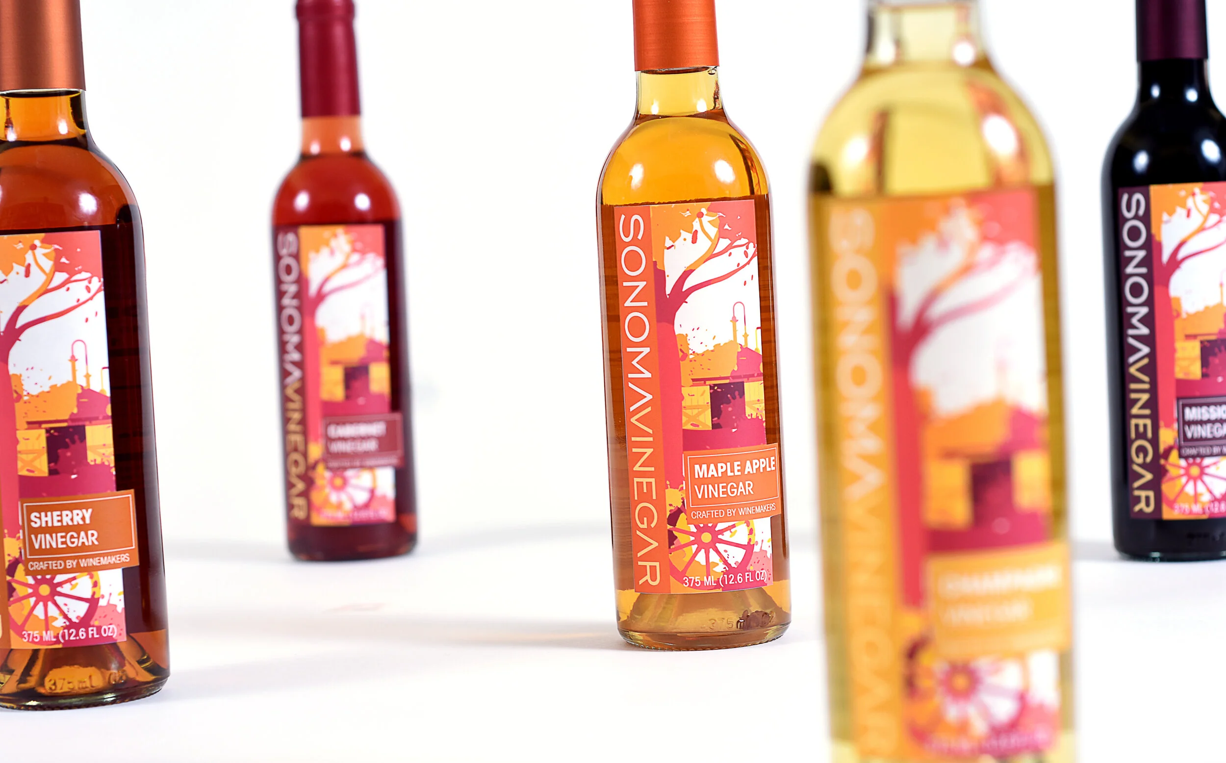 Sonoma Vinegar™ was one of my all-time favorite projects to work on. The clients were excited, quirky and ready to give me nearly full creative control. My role in this project was lead/sole designer. The client was ambitious in the amount of concepts they wanted and were willing to use the time and resources to find the perfect iteration. I ended up with twenty initial concepts, dwindled that down to one favorite that was then run through about three rounds of revisions. Next I moved on to matching the colors of each label to each varietal and foil. This was a daunting yet rewarding project.
